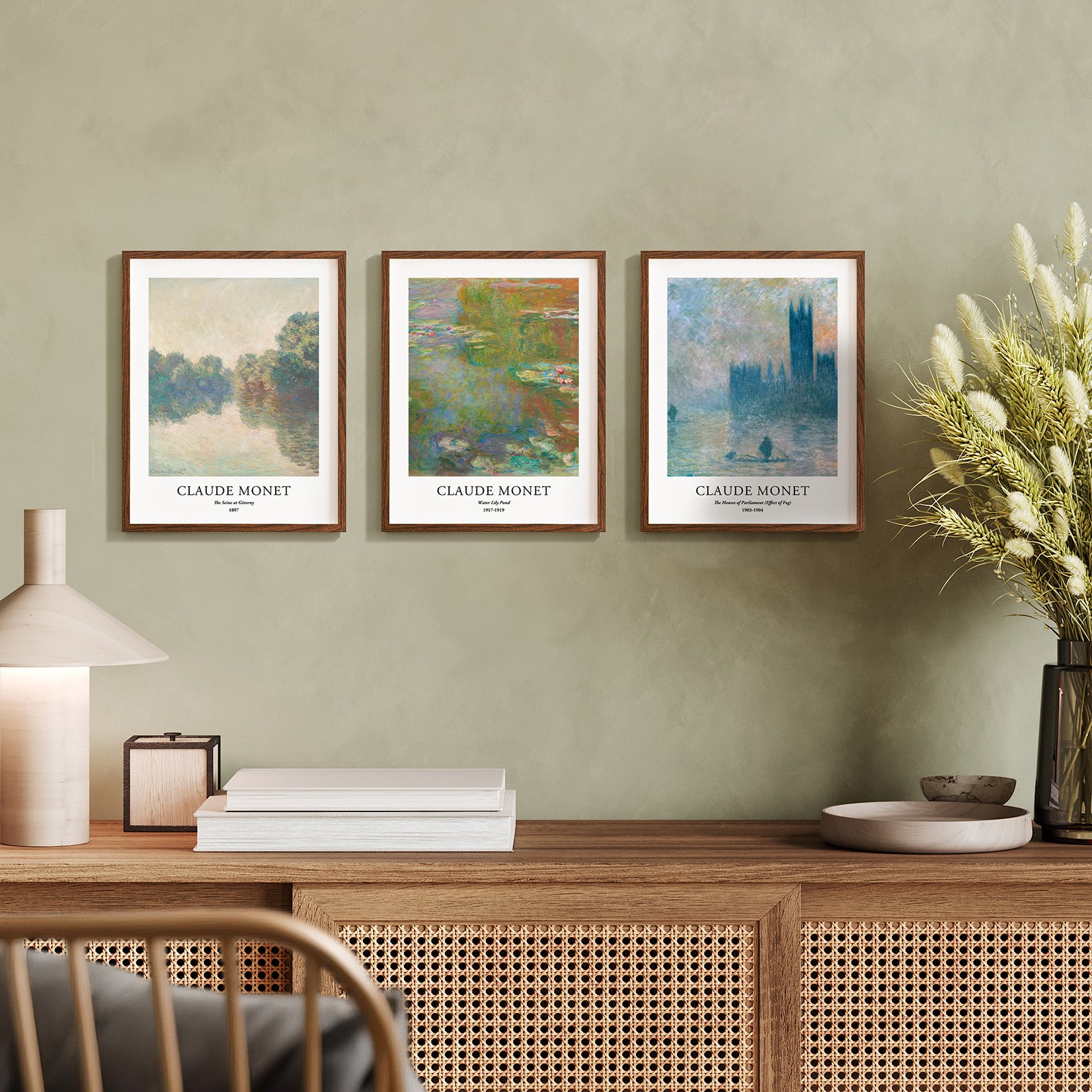 Este juego de impresiones artísticas contiene 3 carteles artísticos de Claude Monet. Las impresiones sin marco de 11x14 pulgadas se ajustan a marcos estándar y están listas para enmarcar. Son ideales para crear una galería mural personalizada.